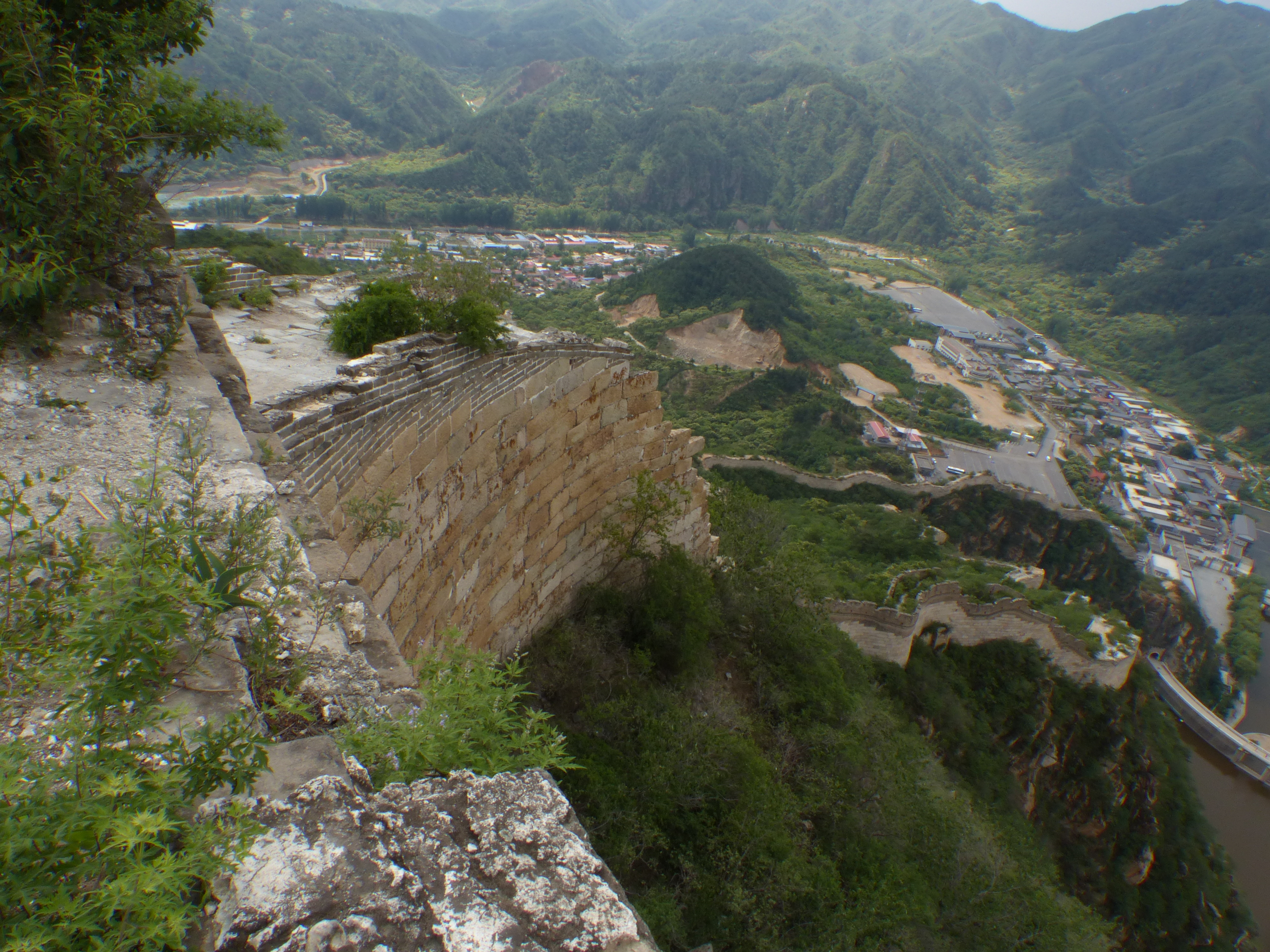The wall dips quickly down